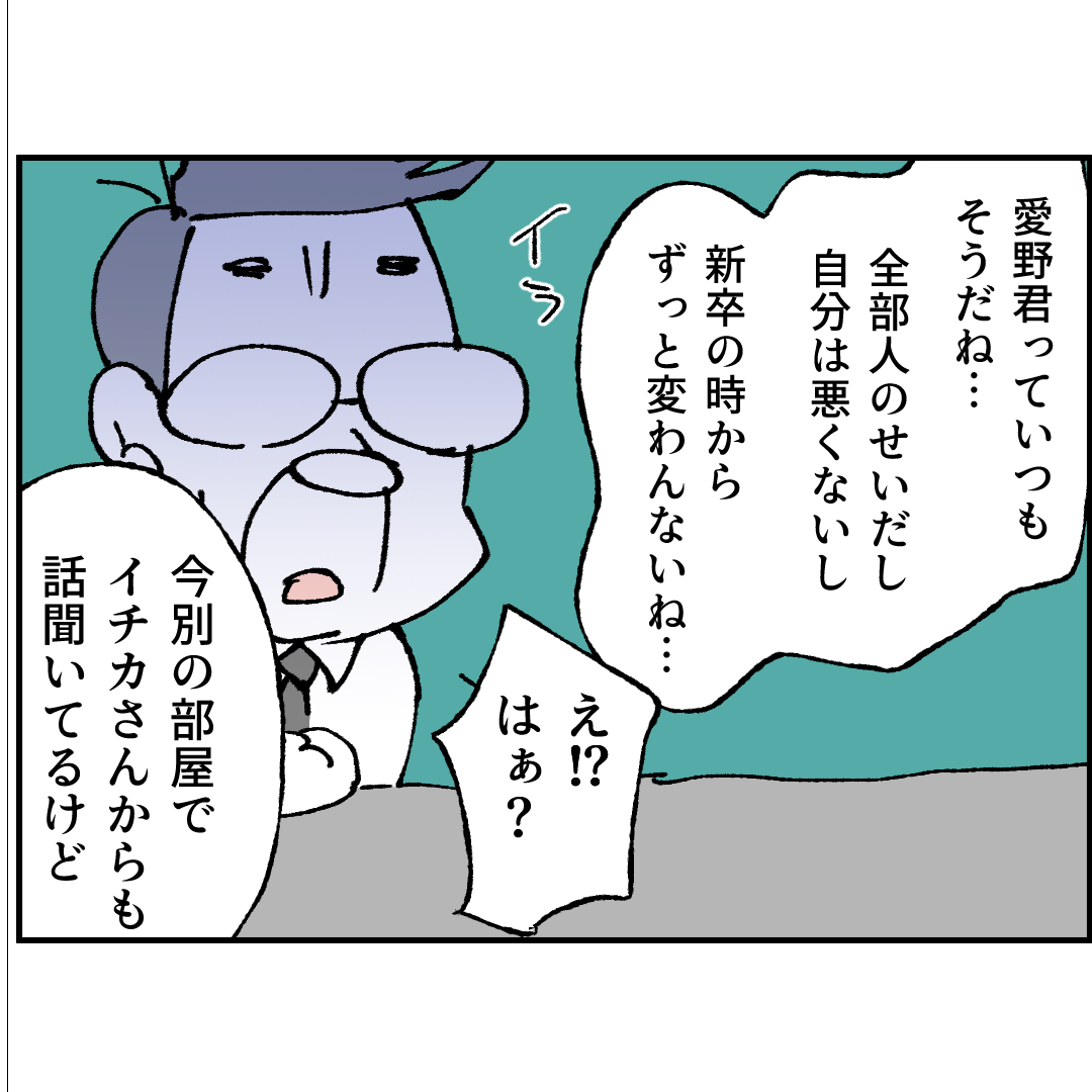 イチカに責任を擦り付けるも、新卒から見ていた上司の目はごまかせない。