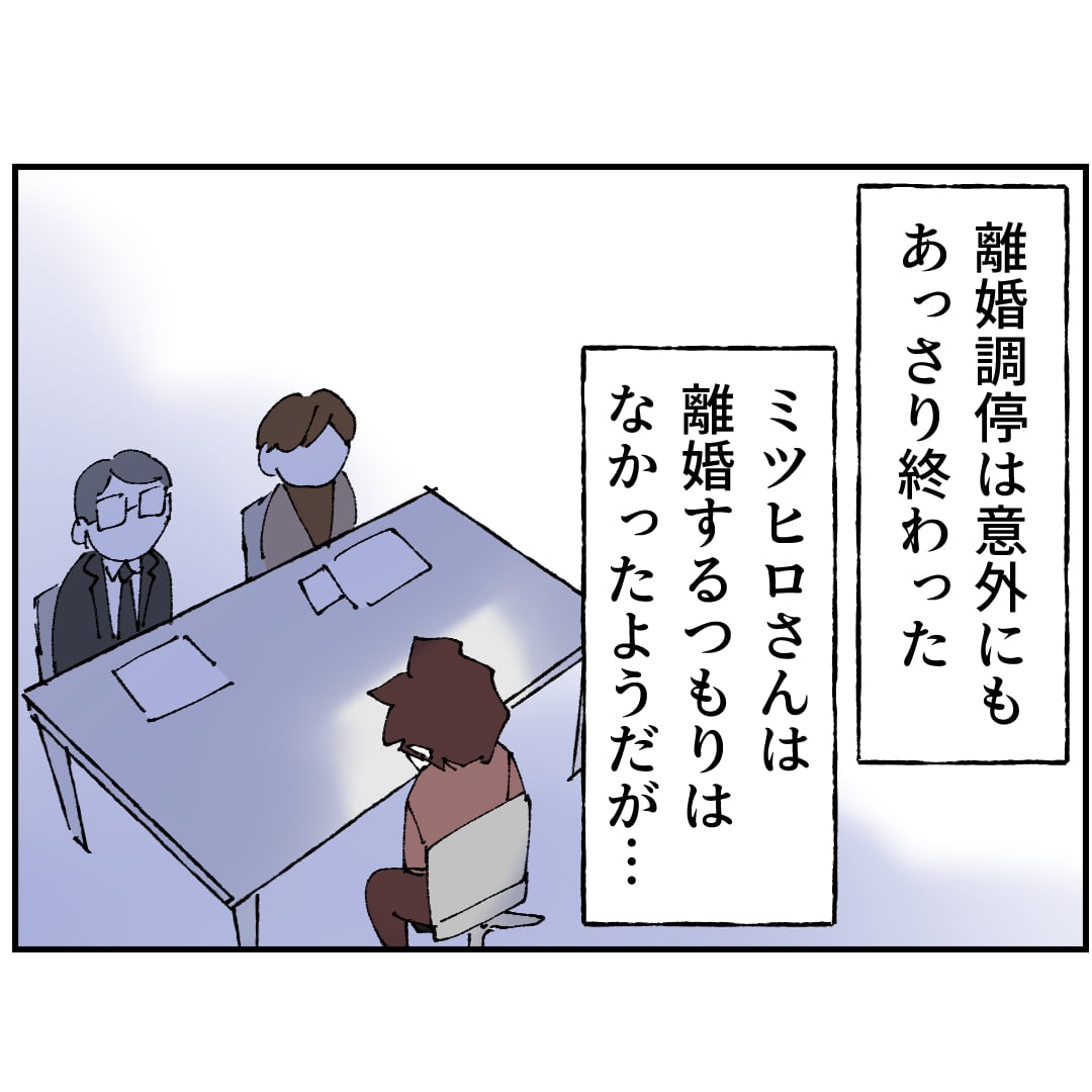 調停でも、この態度は相変わらずクズっぷりを発揮していますね。最後の最後まで… 無能無職の2刀流で今後どうやって生きていくのかな?慰謝料と養育費は、直接は支払われないけどお母さんの相続後に家の売却金の残額がヒロキ君(双子のマヒロ君にも?)に支払われるから子供の将来のお金としてはなんとなるんじゃない。できればマキさんにも遺贈して、慰謝料に代替することにして欲しいですね。 最後は、路上生活者になってみーくんが夜の星空を見て、「なんでだよ、みんな俺が好きなくせに…」とかいう感じですね…
