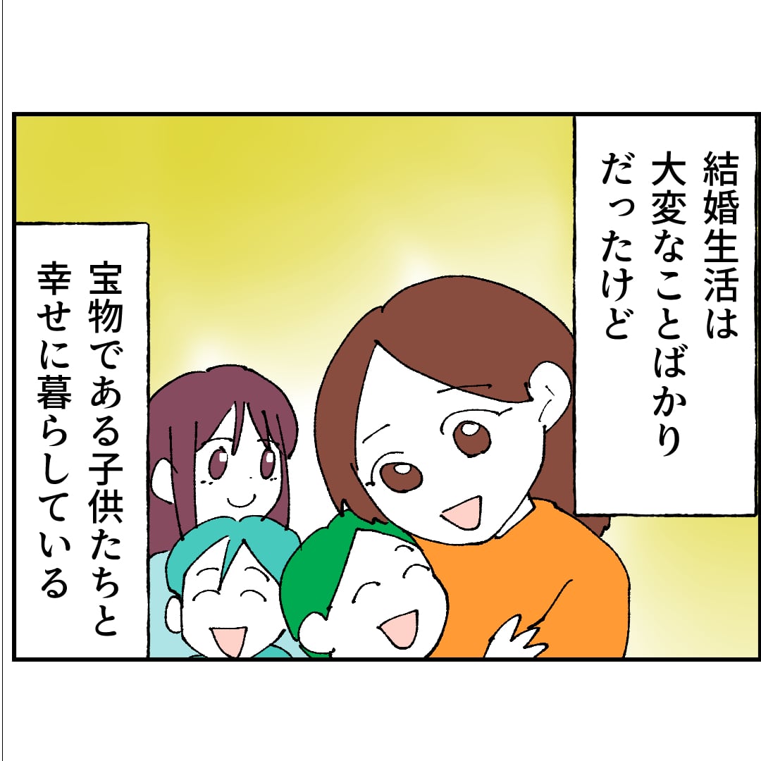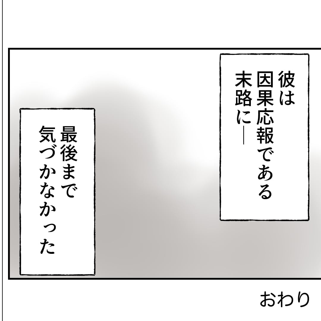 無能無職に加えて、ギャンブル、借金、浮浪者とはクズに相応しい末路ですな… それでも自分のクズっぷりが反省できないところがモースト・バリアブル・クズといってもいいくらいです。イチカは、請求に応じてすぐ慰謝料を支払ったようで、みーくんに関わった事を後悔してると思いますわ。マキさん達は、クズの事は忘れて、一生懸命生きていってほしいですね。100回連載お疲れ様、ありがとうございました。その後はkindleで拝見いたします。